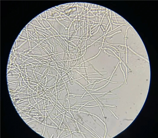 调取少量菌丝放在显微镜下检查,查看菌丝特征是否符合所培养的菌类,有无杂菌污染,具有锁状联合特征的种类还应看到锁状联合现象。具锁状联合的种类有锁状联合出现的越多菌种结实性越强特点。