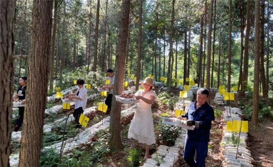7月9日,全国融媒体江西采风行一团来到广昌,参观广昌食用菌产业。2020年,江西省利财食用菌有限公司与旴江林场合作,在距县城仅5公里的旴江林场租用山林基地面积1260亩,租期20年,利用当地林下仿野生自然环境,发展种植樟树灵芝、茶树菇等食用菌及岗梅根、黄金等中药材,种出的灵芝和茶树菇更接近野生风味,品质更佳,深受客户欢迎,畅销全国各地市场。其中樟树灵芝种植面积60亩,每亩5000筒,共30万筒,亩产鲜菇达3000斤,干菇300斤,一年可出菇3次,实现总产值100多万元;茶树菇种植面积20亩,每亩5000筒,实现产值约40万元。同时,岗梅根和黄金等中药材是王老吉凉茶饮料的生产原料,利财公司与王老吉饮料企业合作,采取订单生产和统一包销的模式,利用食用菌棒堆间隙套种岗梅根和黄金等中药材,既充分利用了土地资源,又增加了经济效益。目前,该基地已种植岗梅根中药材面积达880亩,黄金面积300亩,每亩可种200棵(黄金每亩350棵),成长期约3年,每棵产药材约40斤,预计可实现亩产值近万元。目前,该基地吸收工人20余人参与食用菌和中药材种植生产管理(其中贫困户2名),可实现月收入3600-4500元/月。