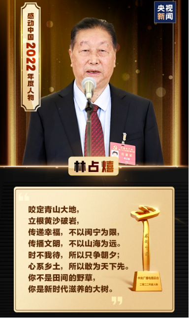 3月4日晚,感动中国2022年度人物颁奖盛典在央视播出,菌草技术发明人、福建农林大学研究员、国家菌草工程技术研究中心首席科学家林占熺当选感动中国2022年度人物。