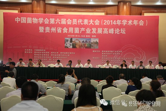 7月14日至16日,中国菌物学会第六届会员代表大会(2014 年学术年会)贵州省食用菌产业发展高峰论坛在贵州省贵阳市举行。此次会议由中国菌物学会主办,贵州省农业科学院、贵州大学、贵州省微生物学会、贵州省农业委员会、贵州省扶贫开发办公室、贵州省科学技术协会、贵州省科学技术厅、贵阳市人民政府、铜仁市人民政府共同承办。来自全国各地学会会员、菌物科技工作者420余人参加了开幕式。此次学术年会组织周密,分为大会报告和分会场学术报告两部分进行。分会场学术报告有医学真菌分会场、菌物遗传及分子生物学分会场、植物病原真菌分会场、菌物多样性及系统学分会场、食用菌论坛及分会场、药用真菌及次生代谢产物分会场、学生组等11个学术交流分会场,包括107个学术报告。