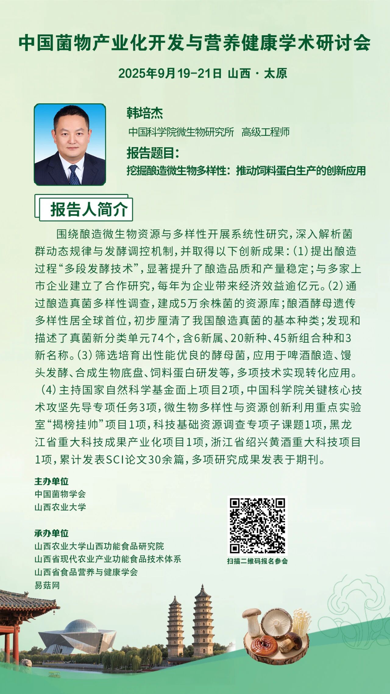 主旨报告嘉宾简介|中国菌物产业化开发与营养健康学术研讨会
