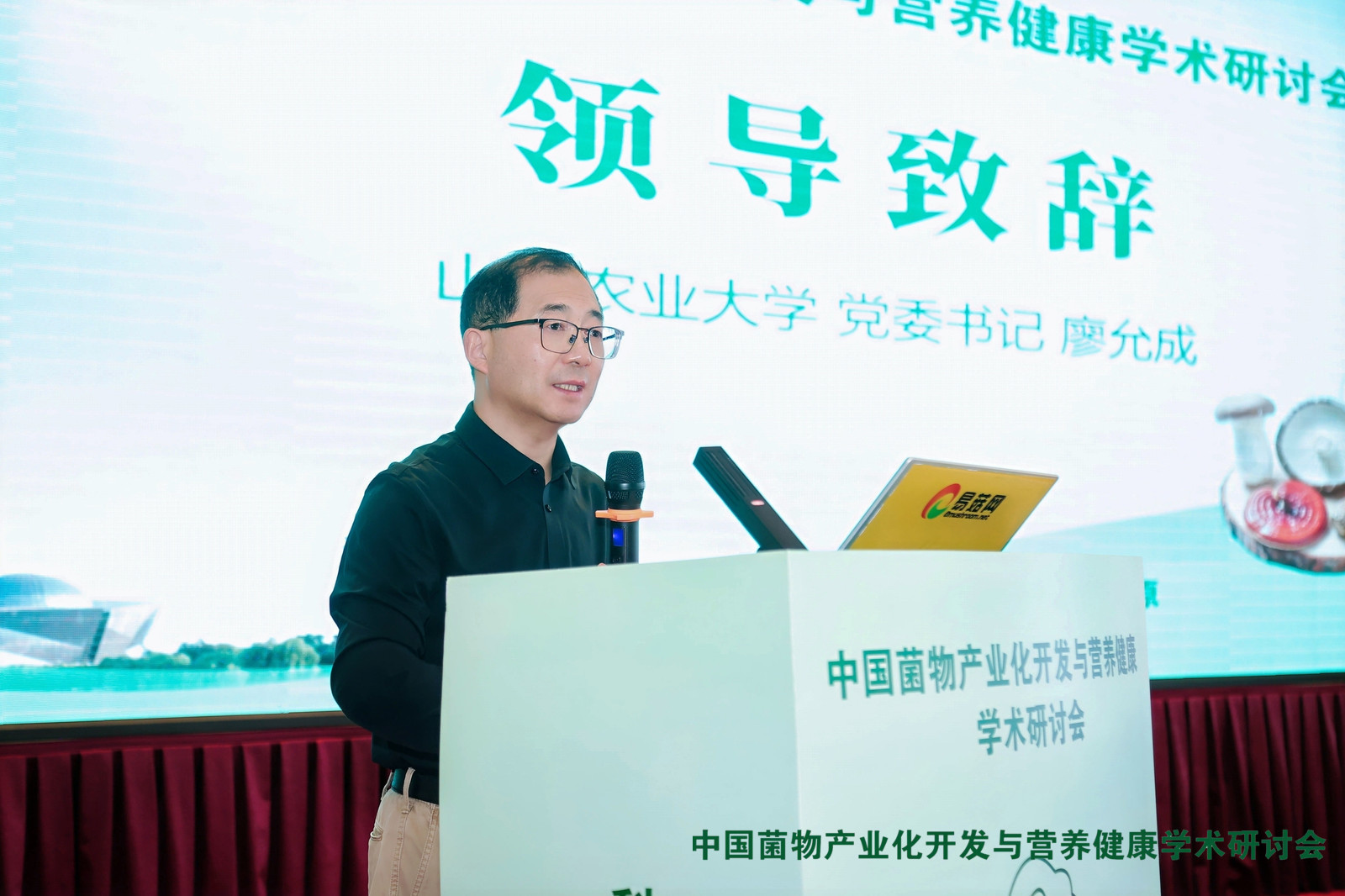 山西农业大学党委书记廖允成山西农业大学党委书记廖允成从我国食用菌产业发展现状与政策背景、学校在菌物学科建设与产学研融合方面的历程与成果展开叙述,他介绍,山西农业大学自1907年建校以来,在食用菌教育、科研推广和产业服务方面成绩斐然。三十年多来,培训菇农5万多人次,推广300多个食用菌优良品种,集成平菇、猴头、香菇、灵芝、虫草、白灵菇、杏鲍菇等多种食用菌产业化栽培高产配套技术,在山西省30多个县市从事食用菌科技扶贫和产业帮扶工作。面对当前国家推动食用菌提质增效、践行大食物观的重要机遇,他表示希望通过本次活动,共同探讨菌物科学高质量发展的新思路、新方法、新举措,为践行大食物观、服务乡村产业振兴作出新的更大贡献。