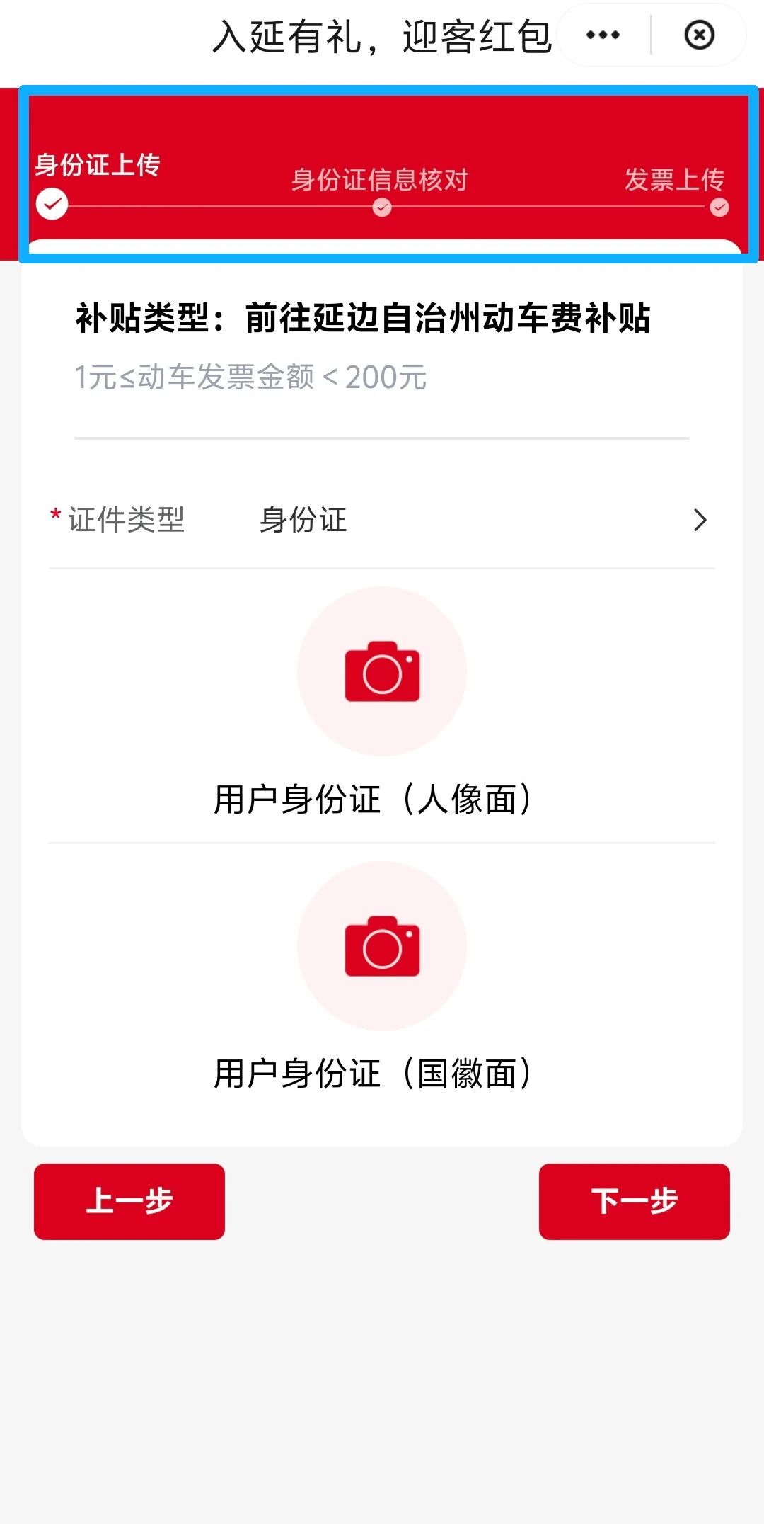 打开云闪付app,定位延吉——打开本地精彩首栏——点击入延有礼、迎客红包专题入口;信息填写:提交姓名、身份证,上传身份证、联程票据、银行卡照片;进度查询:实时查看“提交—审核—发放—到账”状态;红包到账:奖励自动转入本人云闪付app账户内,游客可到云闪付app—我的—红包查看。