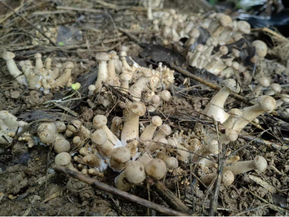 经过一个多月的精心管理和科学培育,于10月9日迎来关键生长节点,县食用菌中心技术人员对试种基地的北风菌生长情况进行了阶段性查验,现场菌袋内菌丝浓密健壮、长势均匀,部分菌包已成功出菇,菇体形态饱满、色泽鲜亮,标志着此次北风菌引种试种取得阶段性成功。