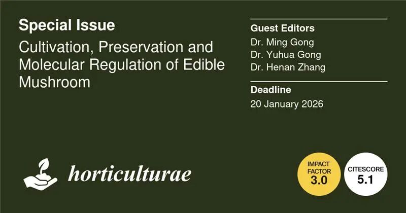 基于此,Horticulturae 特邀上海市农业科学院的龚明副研究员、华中农业大学的龚钰华副教授以及上海市农业科学院的张赫男研究员,合作创建特刊“Cultivation, Preservation and Molecular Regulation of Edible Mushroom (食用菌的栽培、保存与分子调控)”。本特刊旨在汇集关于通过优化食用菌栽培技术提高食用菌营养质量的前沿研究论文,为生产高质量食用菌提供先进的技术见解。欢迎各位学者就相关研究投稿!