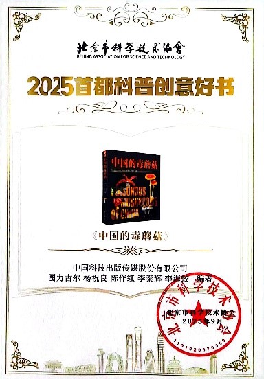 据悉,在近期举行的“2025首都优秀科普好书”评比中《中国的毒蘑菇》荣获科普创意好书奖!“好书”是由北京市科协主办的专业科普图书推荐活动,2023年起每年举办一次。今年的活动有来自101家出版社的335部科普作品参加,经专家评议选出100部图书入围。