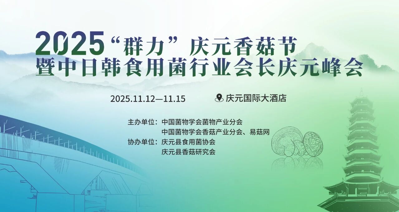 近年来,世界经济增速放缓,国际环境复杂多变,我国作为全球最大的食用菌生产国和出口国,面临消费市场波动、行业竞争加剧等严峻挑战。为进一步加强国际交流与合作,探索符合新时代格局下的产业发展路径,经与有关国家行业组织商议,拟于2025年11月12-15日在浙江省庆元县举办“2025‘群力’庆元香菇节暨中日韩食用菌行业会长庆元峰会”。并邀请欧洲施尔丰公司代表参加交流,本次活动旨在汇聚中日韩及欧洲食用菌行业同仁,共同探讨产业升级发展路径,促进食用菌产业健康和可持续发展。有关活动安排计划如下: