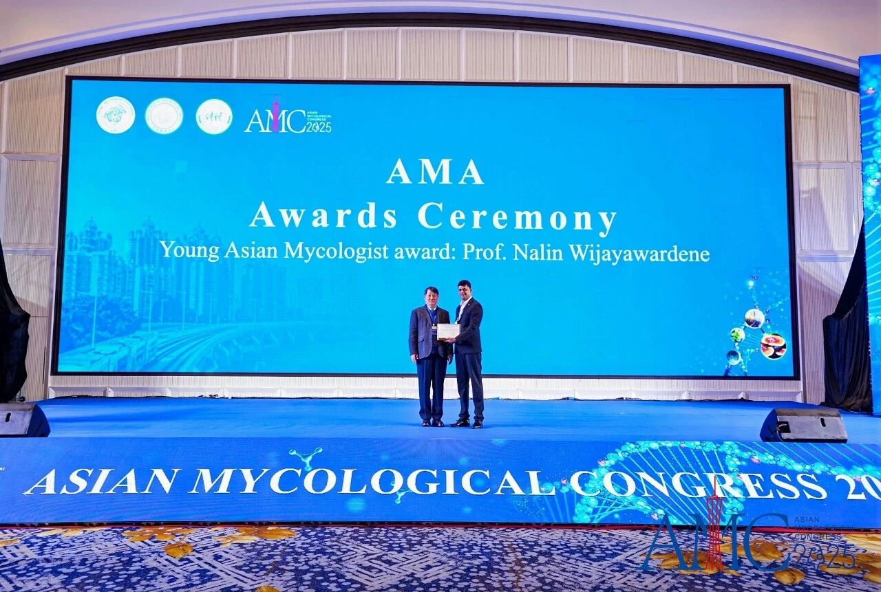 在2025年亚洲菌物学大会开幕式上,来自斯里兰卡的Nalin Wijayawardene博士凭借在菌物学领域的突出研究成果与执着探索精神,成功斩获“亚洲青年菌物学家奖”。这一奖项旨在表彰亚洲地区在菌物学研究中取得创新性突破、展现巨大发展潜力的青年学者。Nalin Wijayawardene博士的获奖不仅是对其个人科研工作的高度认可,也为斯里兰卡菌物学研究领域赢得了荣誉。