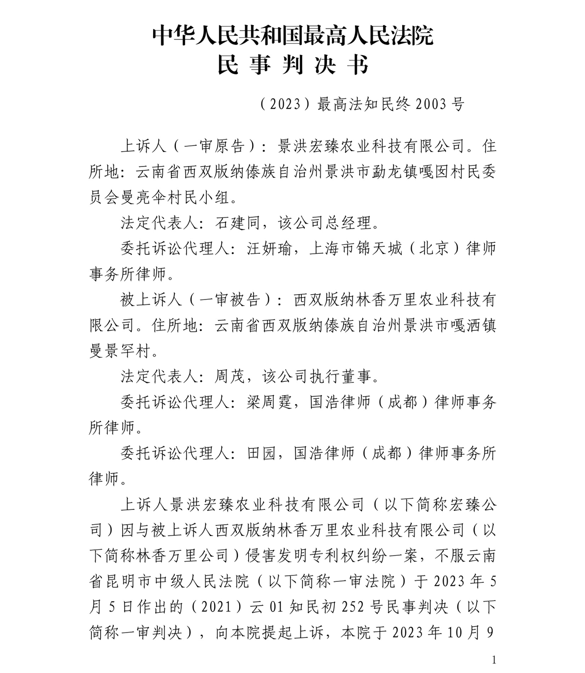 【核心提示】:2025 年 12 月 31 日,最高人民法院终审判决景洪宏臻农业科技有限公司与西双版纳林香万里农业科技有限公司侵害发明专利权纠纷案,认定林香万里公司侵权并判赔 40 万元。此案是我国第二起食用菌菌种专利侵权典型案例,明确了食用菌专利侵权认定规则,彰显司法对微生物知识产权的保护,鼓励行业创新发展。