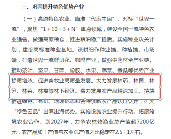 《行动计划》指出,云南将充分发挥立体气候优势与森林资源禀赋,在统筹推进林药、林笋、林菜、林禽等多种林下业态发展的基础上,重点做强林菌产业,实现生态保护与经济发展的协同共赢。同时,产业升级将特别注重菌种技术的创新与突破,积极培育生物制造新增长点,并推动中药传承创新发展,着力培育一批中药(民族药)品牌产品。